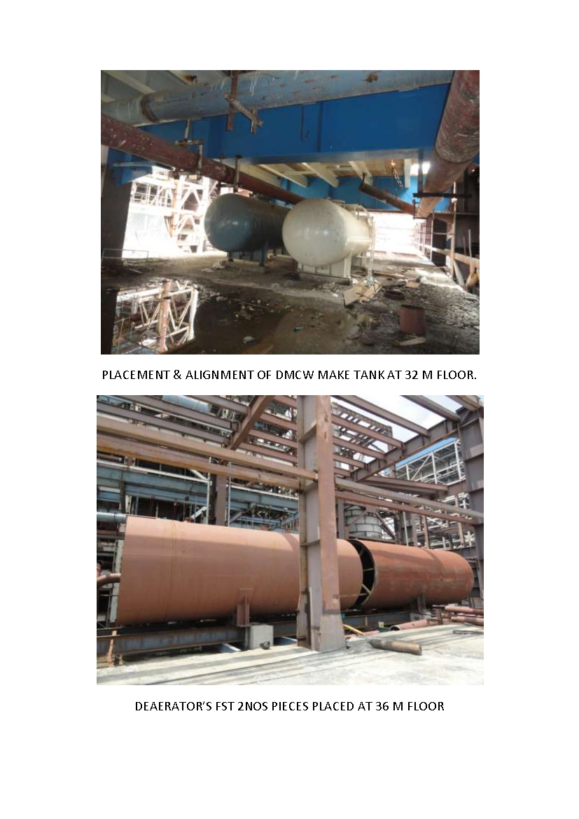 On erection point of view erection of  De aerator needs detail planning and equipment for erection .De aerator consist of  de aerator and FEED STORAGE TANK. De aerator is in one assembled unit and FST consist of three units prefabricated but
